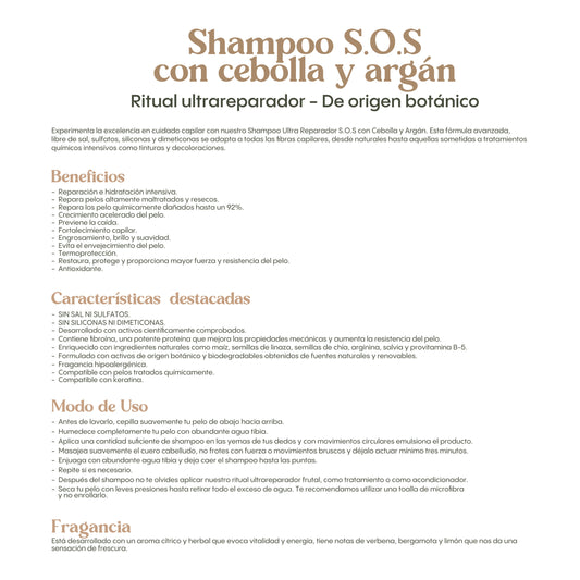 Shampoo S.O.S Reparador Ritual Botanico – Con Cebolla y Argán para un Cabello Fuerte y Saludable - Repair Shampoo – Onion & Argan for Strong, Healthy Hair 400 ml
