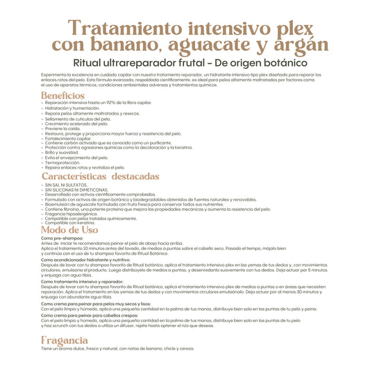 Tratamiento Intensivo Plex Ritual Botánico – Reparación y Nutrición Profunda con Banano, Aguacate y Argán - Intensive Plex Treatment – Deep Repair & Hydration with Banana, Avocado & Argan 400 ml