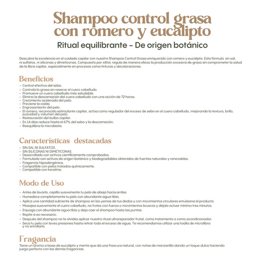 Shampoo Control Grasa con Romero y Eucalipto Ritual Botanico - Oil Control Shampoo – Rosemary & Eucalyptus Detox Balance 400 ml