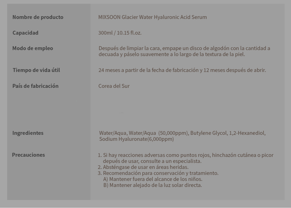 Glacier Water Hyaluronic Acid Serum Mixsoon 300 ml