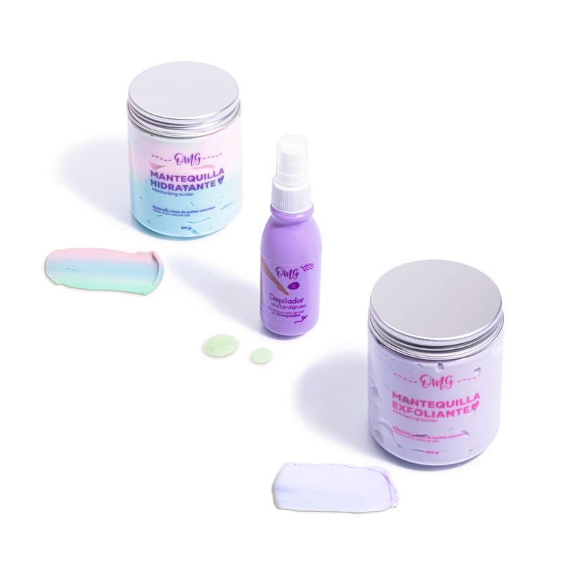Contiene: Depilador en Spray 60 ml , Mantequilla Corporal Hidratante 220 grs y Mantequilla Corporal Exfoliante 220 grs