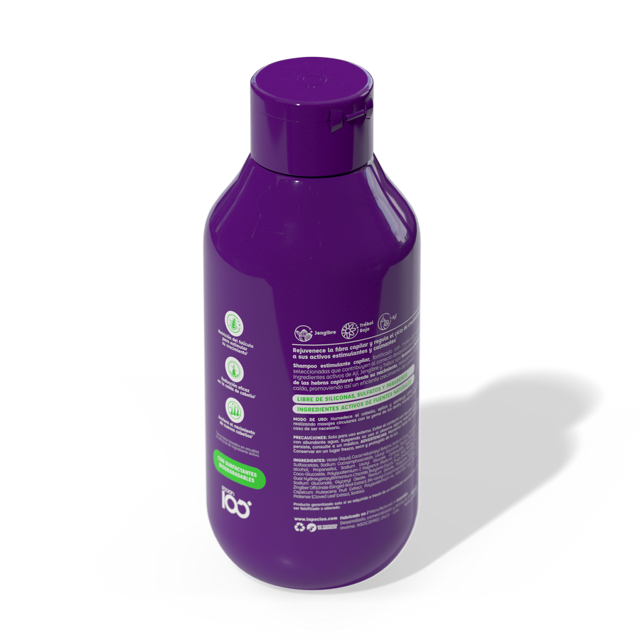 Shampoo Estimulante Crecimiento y Caída con tecnología bioactiva y alto índice de biodegradabilidad. La mezcla única de ingredientes naturales de Ají, Jengibre y Trébol Rojo revitaliza los folículos capilares desde la raíz, acelerando las fases de crecimiento capilar asegurando así, un crecimiento continuo y robusto al mismo tiempo que combate y detiene la caída del cabello.